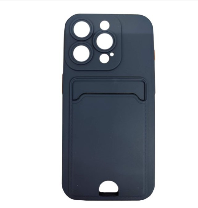 Чехол силиконовый iPhone 15 Pro матовый цветной с визитницей темно-синий