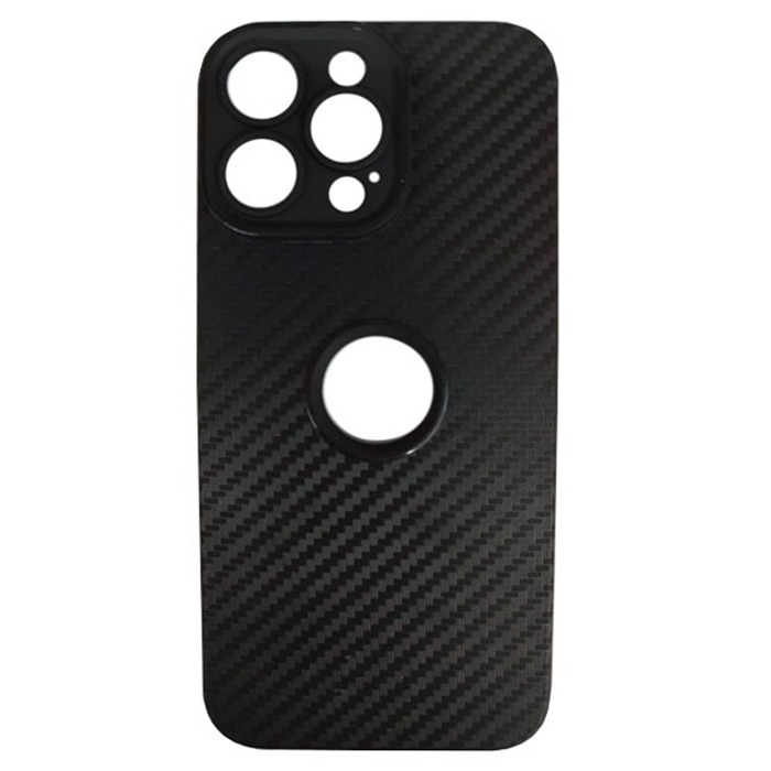 Чехол силиконовый iPhone 15Pro Max карбон с вырезом под логотип черный