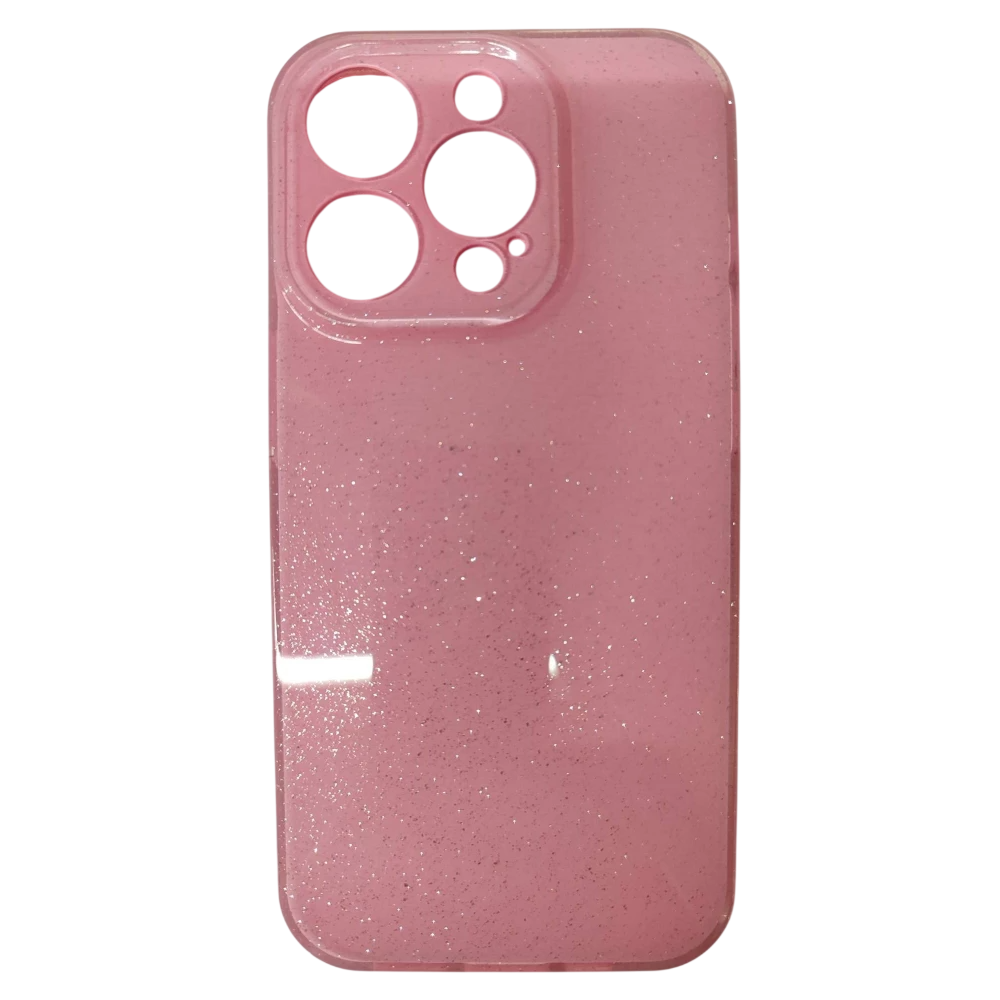 Чехол силиконовый iPhone 15 Pro блестки с защитой камеры розовый