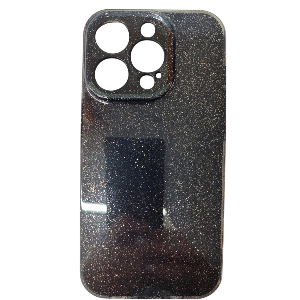 Чехол силиконовый iPhone 15 Pro блестки с защитой камеры черный