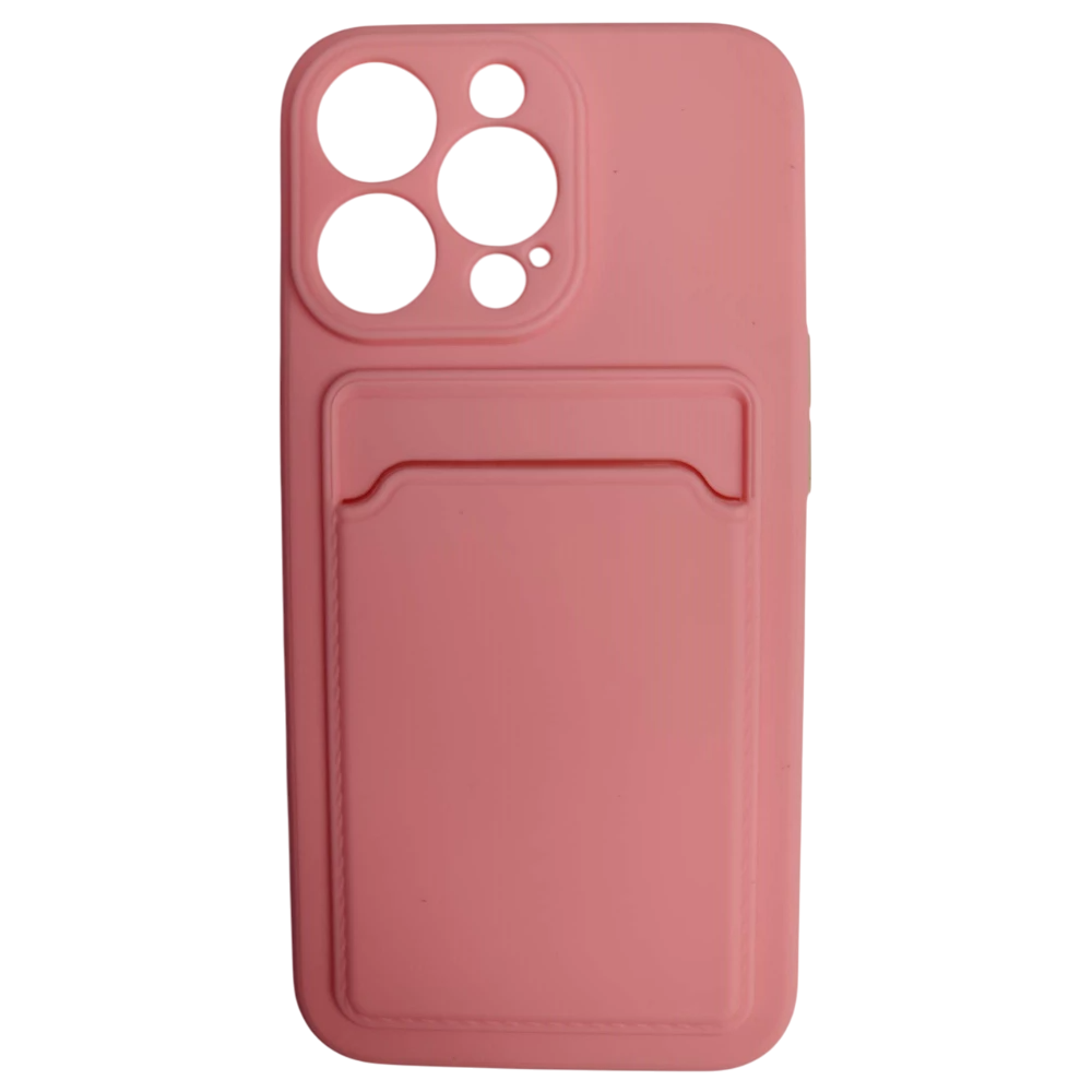 Чехол силиконовый iPhone 13 Pro матовый цветной с визитницей розовый