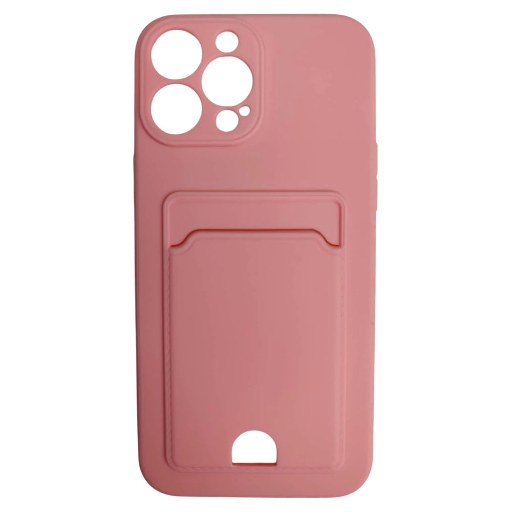 Чехол силиконовый iPhone 13 Pro Max матовый цветной с визитницей розовый