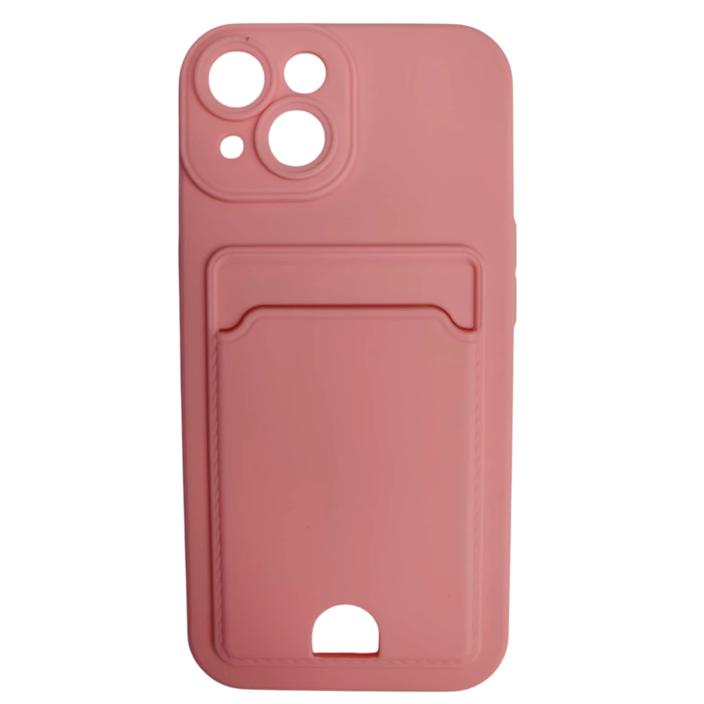 Чехол силиконовый iPhone 15 матовый цветной с визитницей розовый