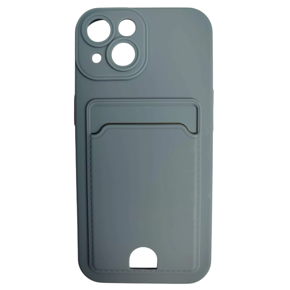 Чехол силиконовый iPhone 15 матовый цветной с визитницей серый