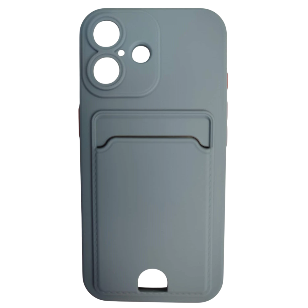 Чехол силиконовый iPhone 16 матовый цветной с визитницей серый