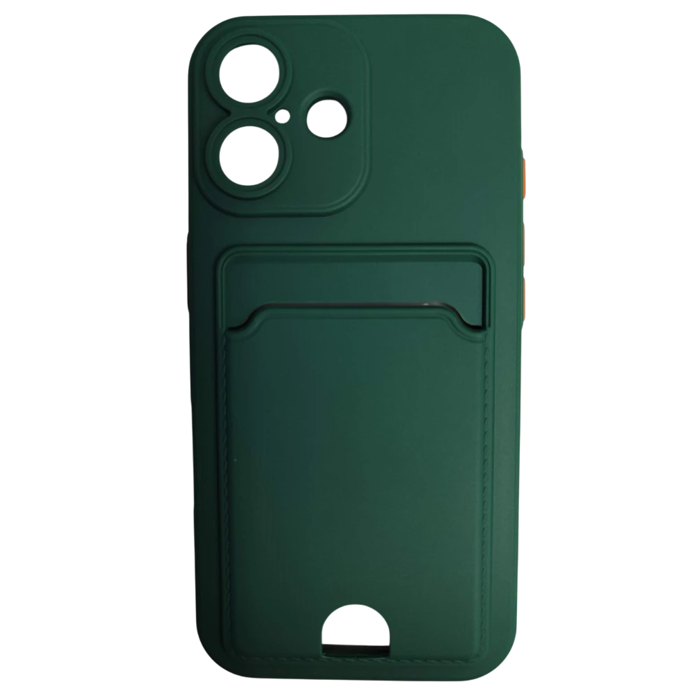 Чехол силиконовый iPhone 16 матовый цветной с визитницей темно-зеленый