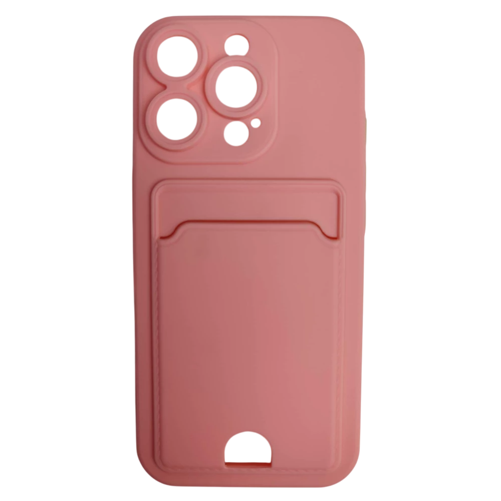 Чехол силиконовый iPhone 16 Pro матовый цветной с визитницей розовый