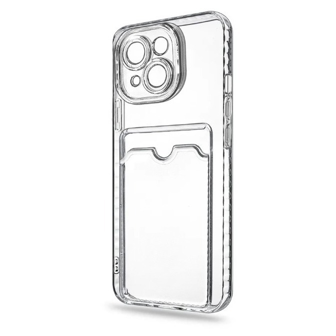 Чехол-накладка для iPhone 15 Plus (с защитой камеры, карманом для карт, прозрачный)