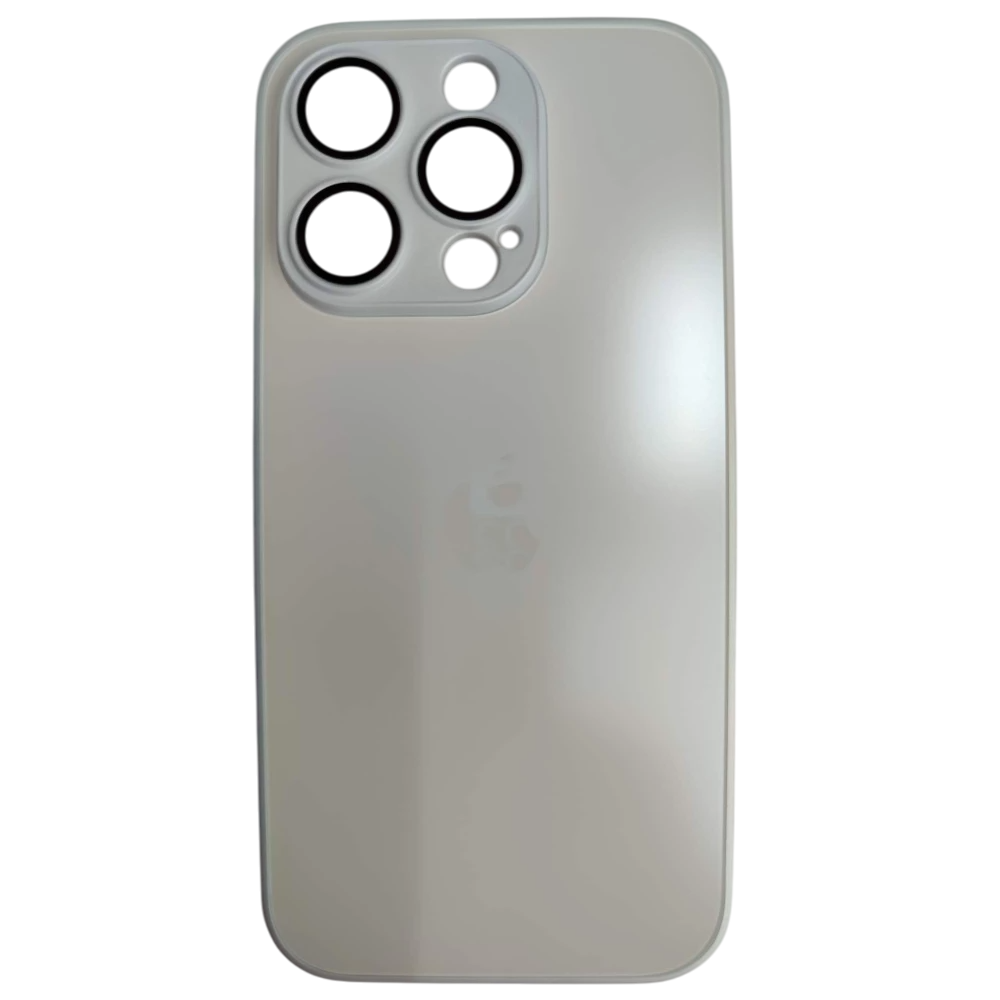 Чехол силикон-пластик iPhone 15 Pro стеклянный матовый с логотипом белый