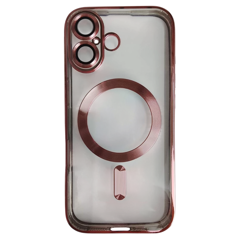 Чехол силиконовый iPhone 17 Magsafe прозрачный с защитой камеры розовый