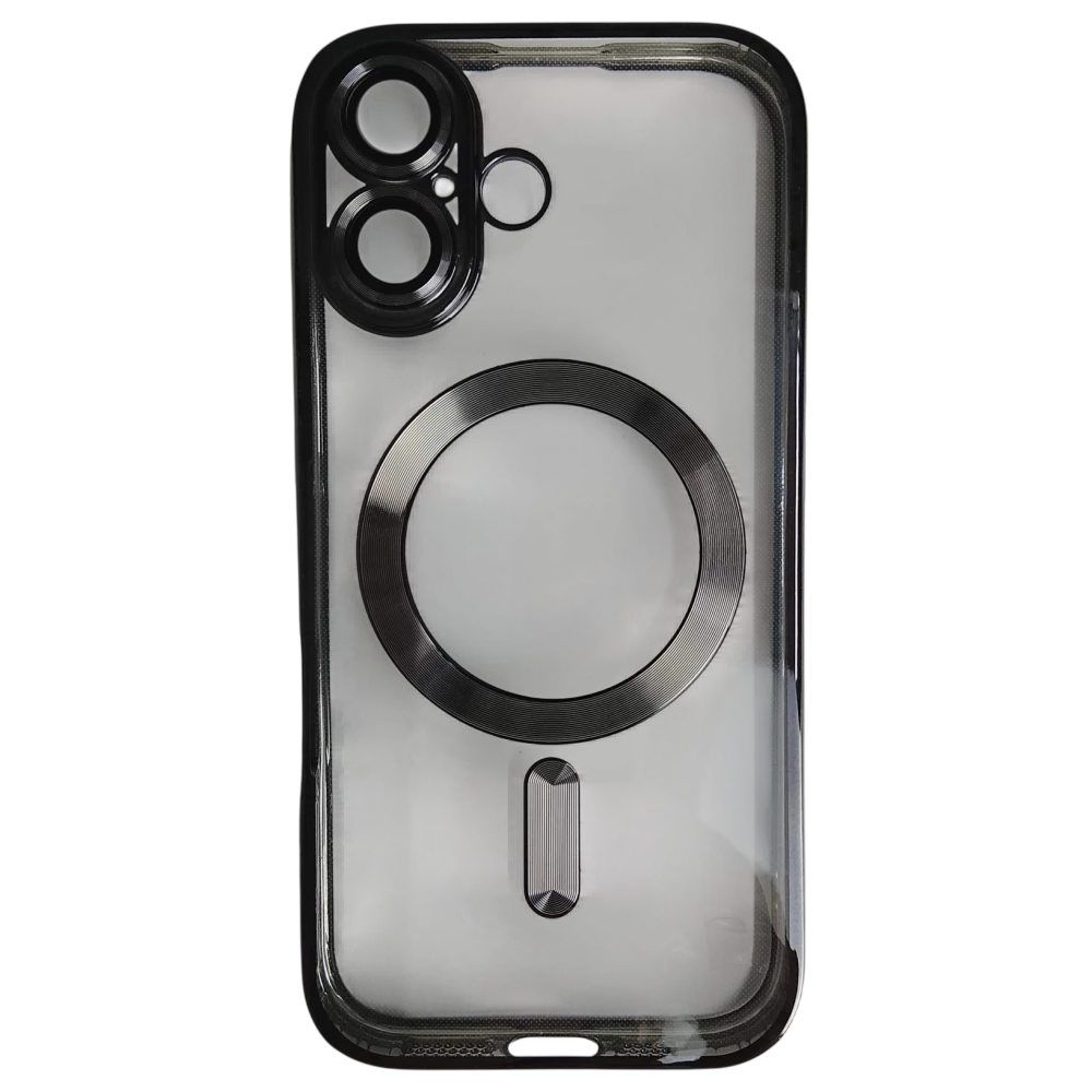 Чехол силиконовый iPhone 17 Magsafe прозрачный с защитой камеры черный