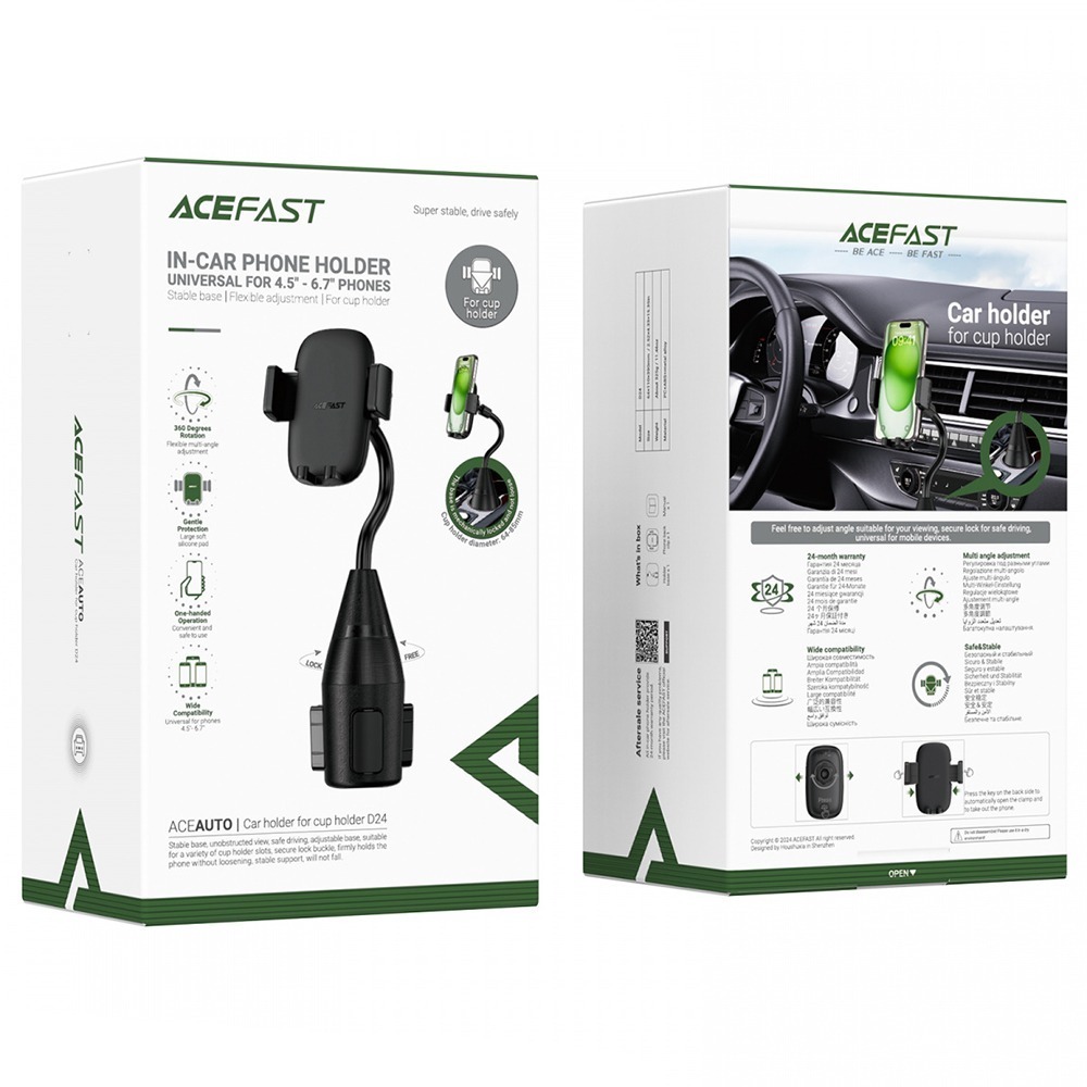 Держатель автомобильный ACEFAST D24, для смартфона, пластик, подстаканник, цвет: чёрный (1/46)
