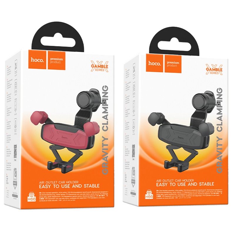 Держатель автомобильный HOCO H66 Gamble, для смартфона, пластик, воздуховод, цвет: чёрный/красный (1/112)