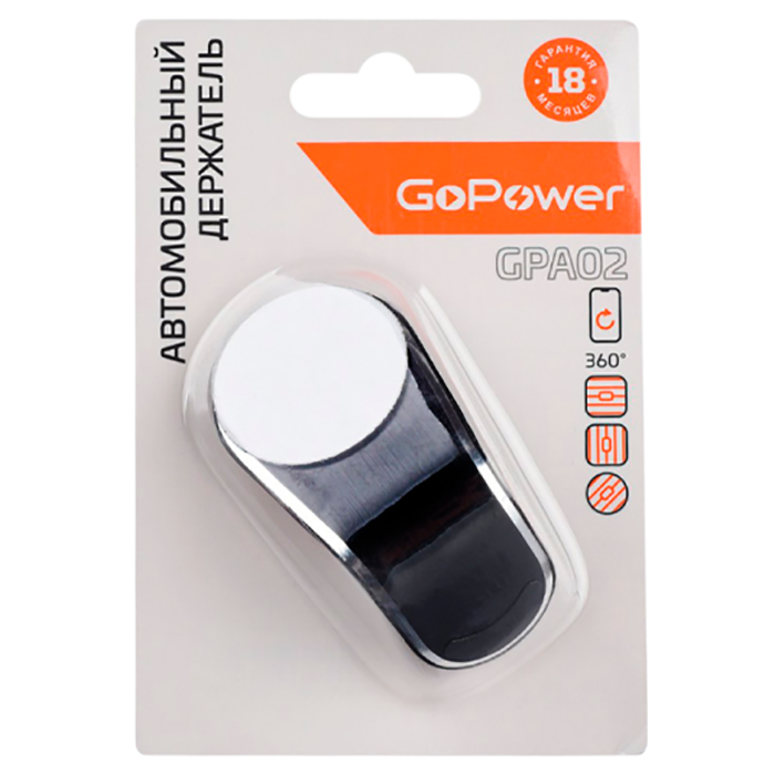 Держатель автомобильный GoPower GPA02 в воздуховод магнит черный (1/250)