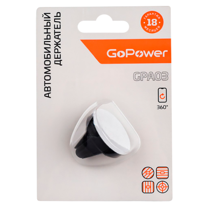 Держатель автомобильный GoPower GPA03 в воздуховод магнит черный (1/250)