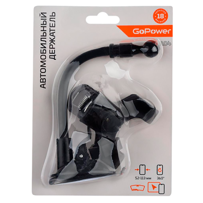Держатель автомобильный GoPower GPA04 присоска черный (1/100)