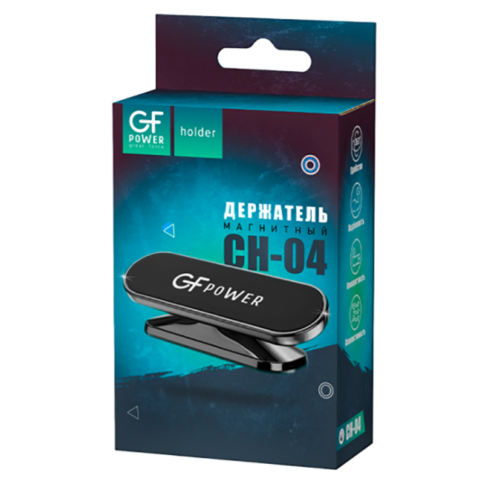 Держатель автомобильный GFPower CH-04 клеевая основа поворотный магнит черный (1/300)