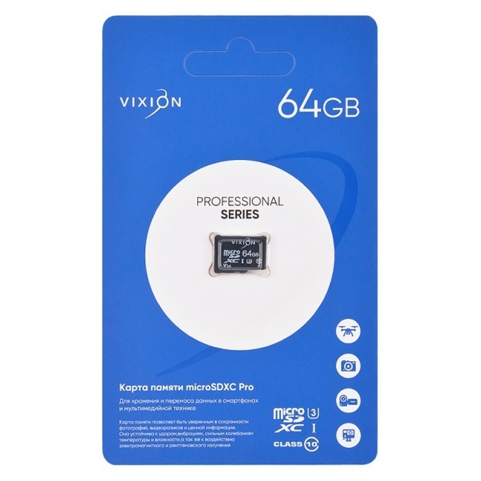 Описание Карта памяти MicroSDXC Pro 64GB VIXION Class 10 UHS-I U3 без адаптера