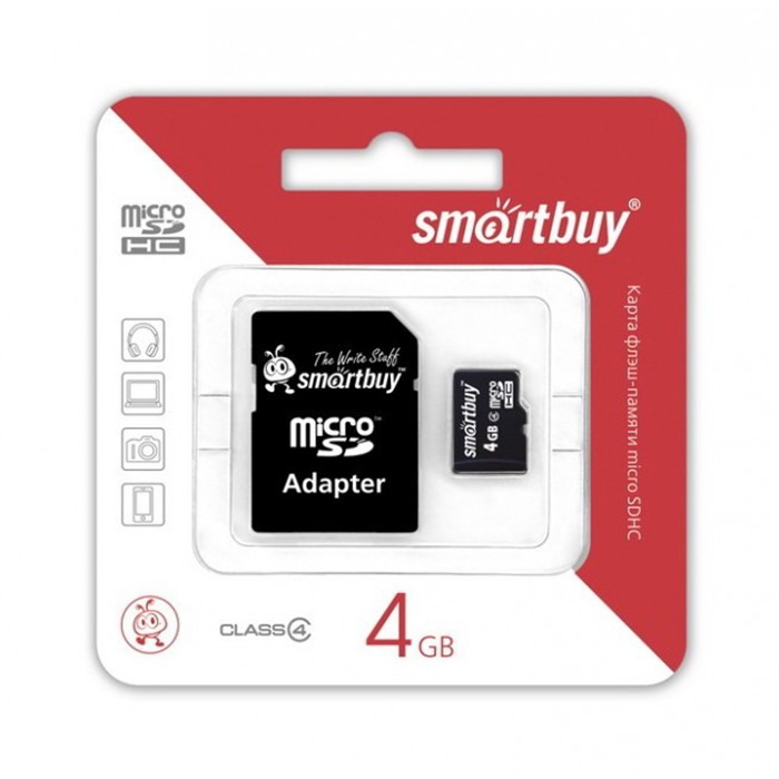 Описание Карта памяти MicroSD 4 Gb Smart Buy +SD адаптер (class 4)