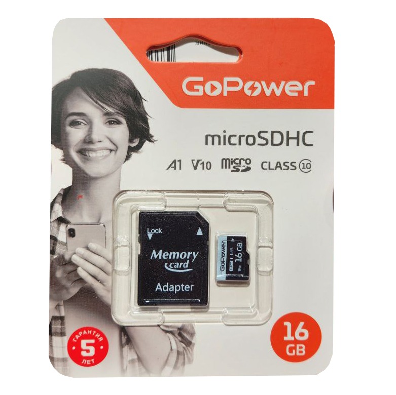 Описание Карта памяти MicroSD 16GB GoPower Class10 60 МБ/сек V10 с адаптером