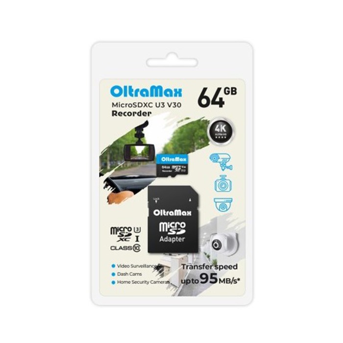 MicroSD 64GB OltraMax Class 10 Recorder UHS-I U3 V30 (95 Mb/s) + SD адаптер