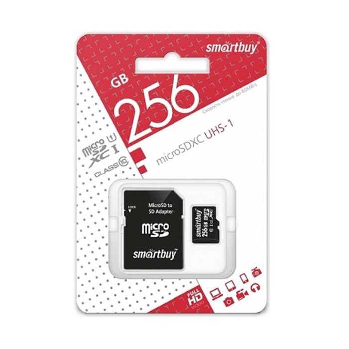 Все характеристикиОписание MicroSDXC 256GB Smart Buy Class 10 UHS-I + SD адаптер