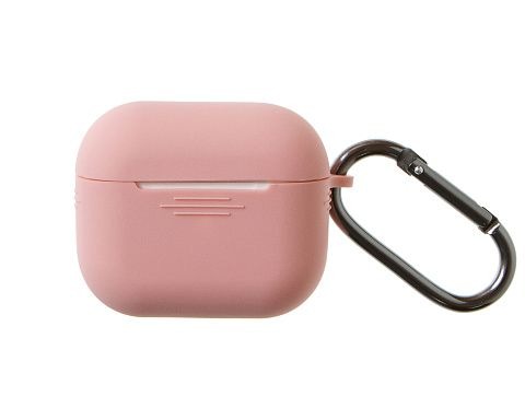 Бокс для наушников AirPods 3 силиконовый с карабином Silicone Case (цвет розовый, в коробочке)