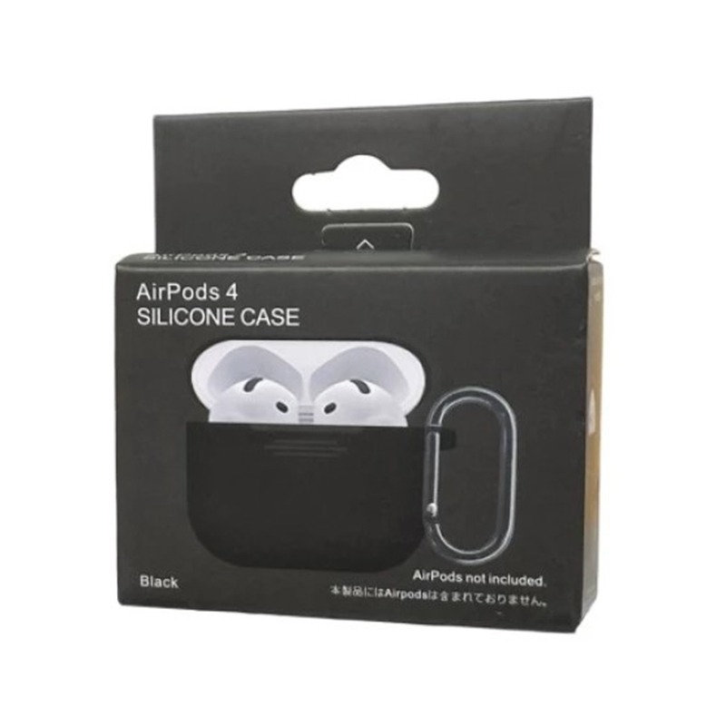 Чехол для наушников AirPods 4 Silicone Case с карабином черный