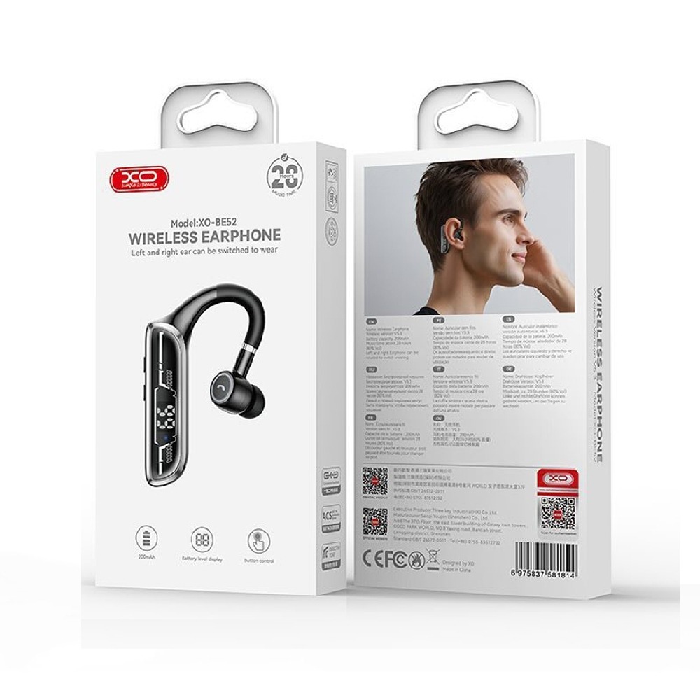 Гарнитура Bluetooth XO BE52, сенсорная, цвет черный