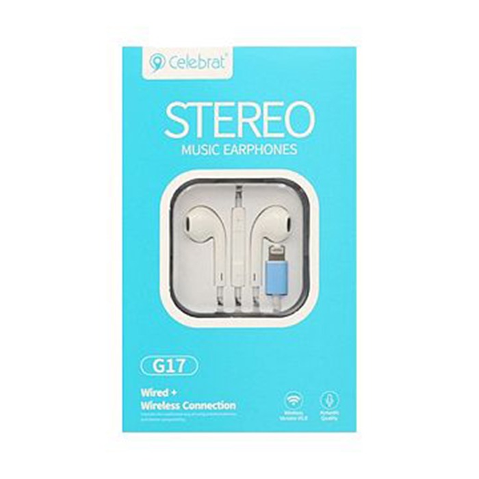 Гарнитура проводная вставная Celebrat G17 (для iPhone 7/8/X) разъём Lightning (цвет белый, разъём Lightning, в коробочке)
