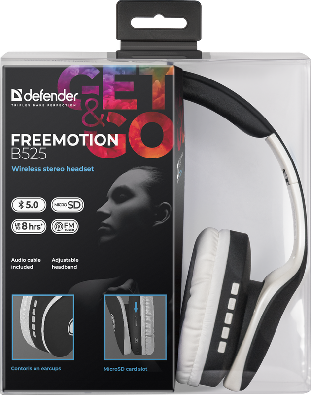 Описание Bluetooth-наушники полноразмерные Defender FreeMotion B525 (black/white) (218088)