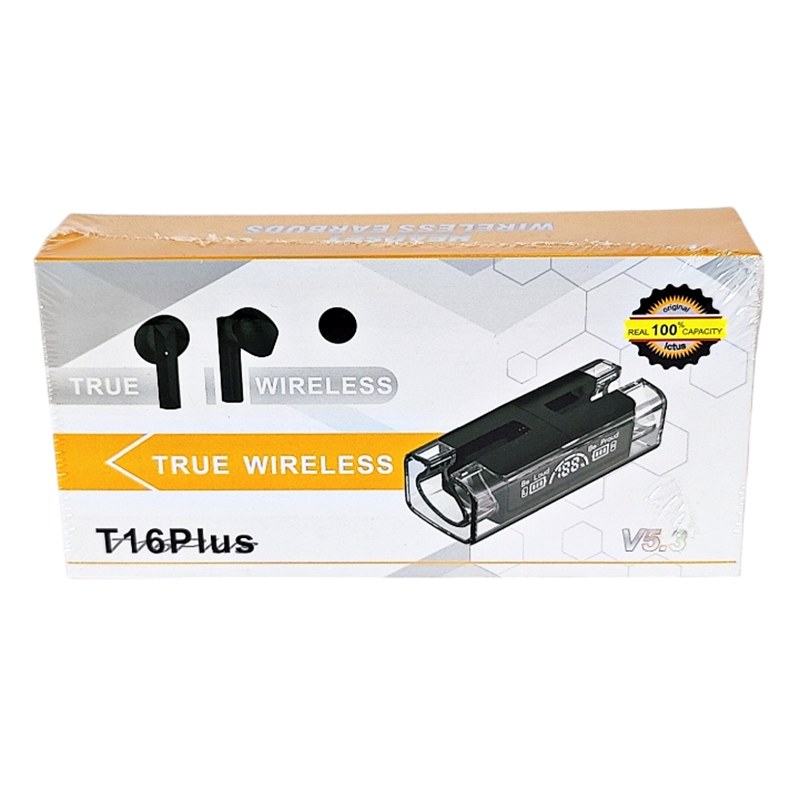 Наушники Bluetooth T16 PLUS, в кейсе для зарядки, сенсорные, цвет черный