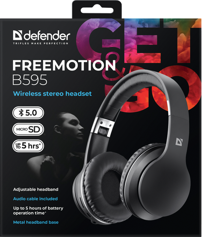 Описание Bluetooth-наушники полноразмерные Defender FreeMotion B595 (black/grey) (220445)