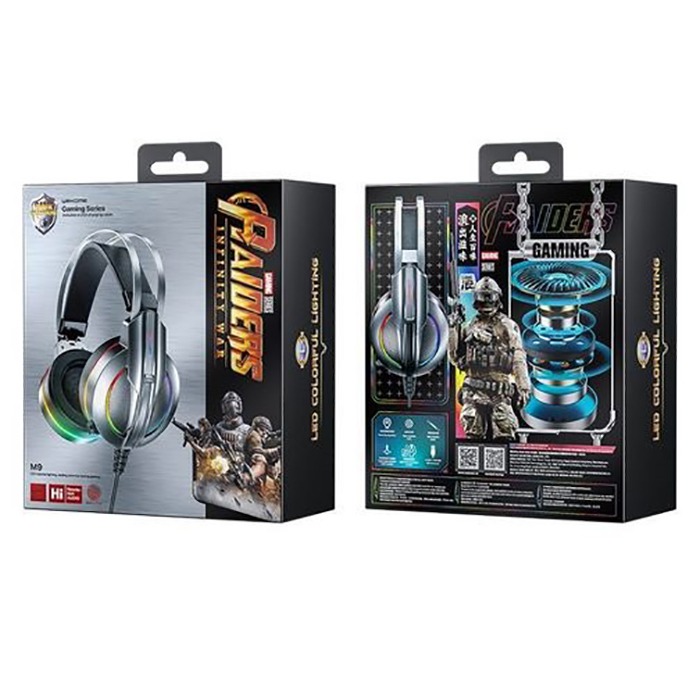 Беспроводные наушники Bluetooth WEKOME M9 (Hi-Fi/50mm/LED RGB/Metal/USB 2m/Mic/Gaming) Серые