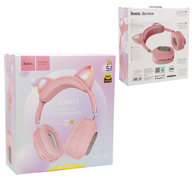 Полноразмерные Bluetooth наушники HOCO ESD13 Cat (розовый)