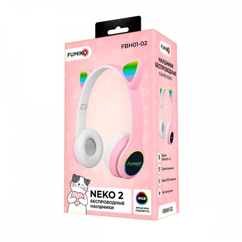 Описание Полноразмерные беспроводные наушники FUMIKO NEKO V2 "Кошачьи уши" (8ч/400 mAh/Bluetooth/AUX) розовые