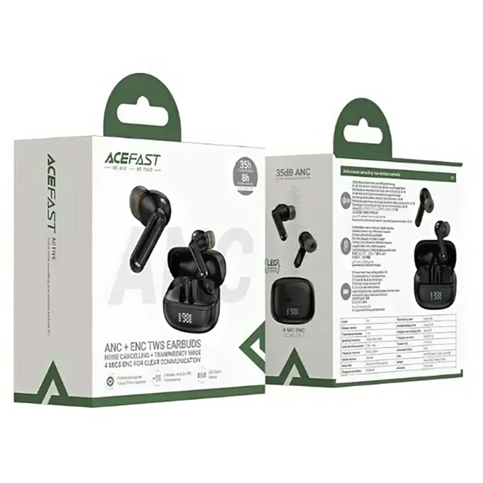 Беспроводные наушники Bluetooth Acefast W1 (TWS, вакуумные, с диплеем, активное шумоподавление) Черный