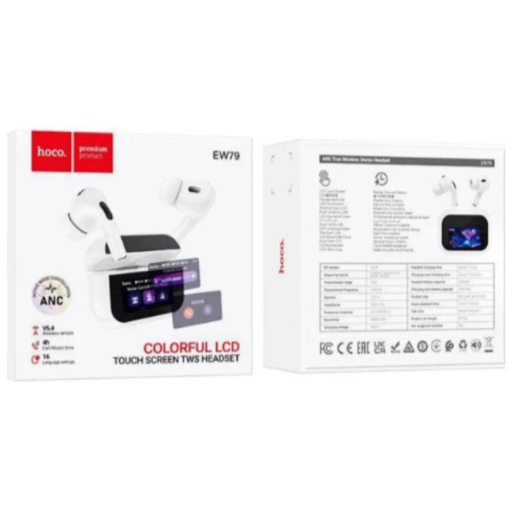 Беспроводные Bluetooth-наушники HOCO EW79 с сенсорным экраном белые