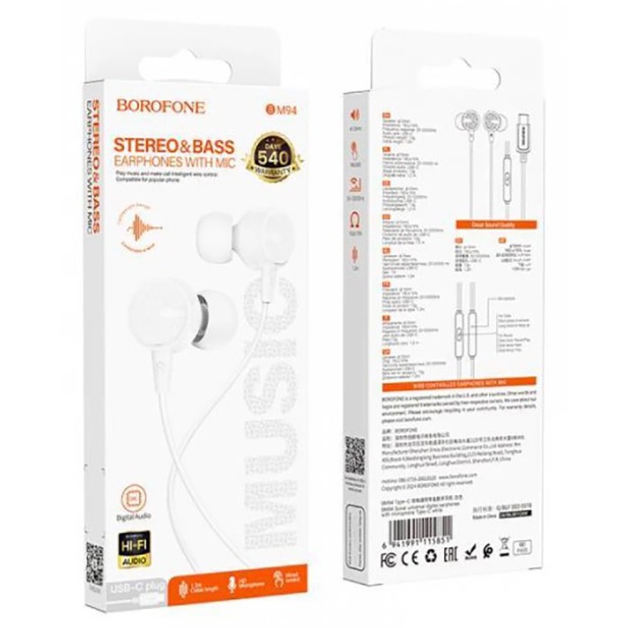 Проводные наушники Type-C BOROFONE BM94 белые