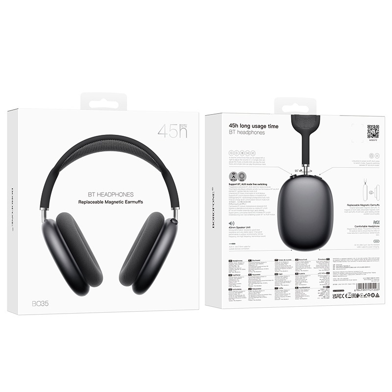 Полноразмерные беспроводные наушники BOROFONE BO35 (45 ч/400mAh/Bluetooth/AUX) серый металл