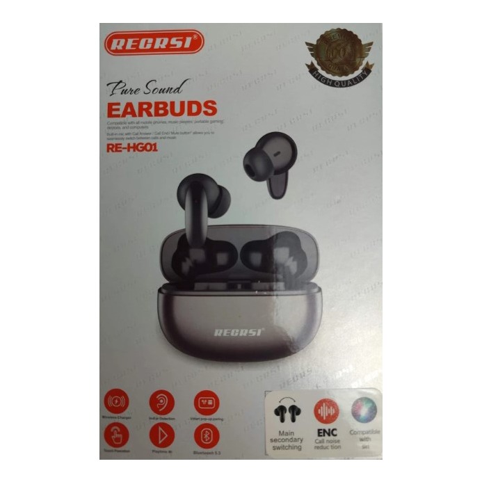 Беспроводные TWS наушники RECRSI RE-HG01 (8 ч/500 mAh) черные