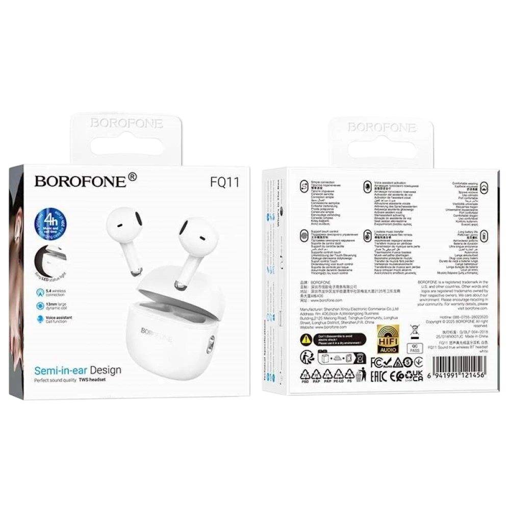Беспроводные TWS наушники BOROFONE FQ11 (4 ч/300 mAh) белые
