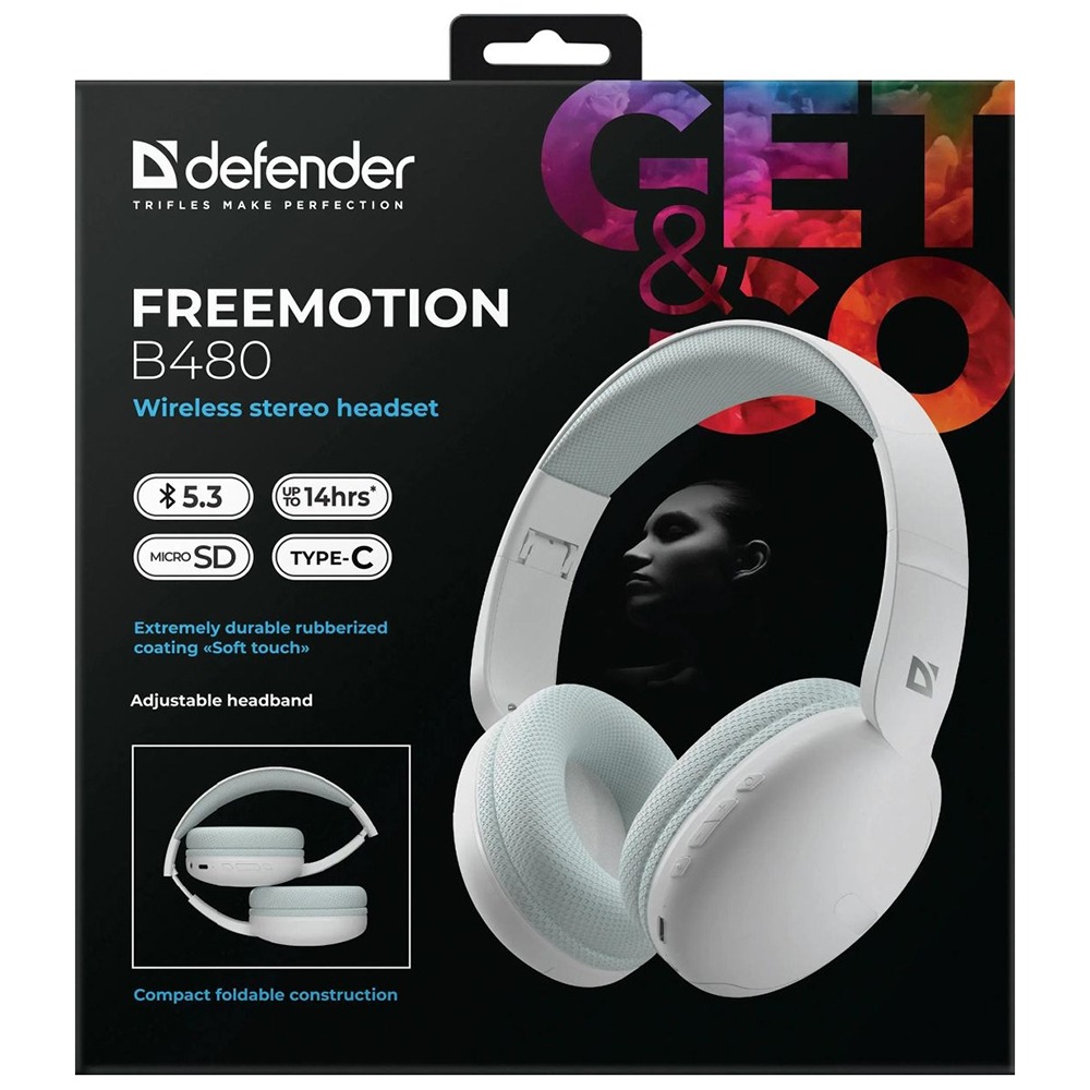 Наушники полноразмерные DEFENDER FreeMotion B480, микрофон, Bluetooth, белый (1/20)