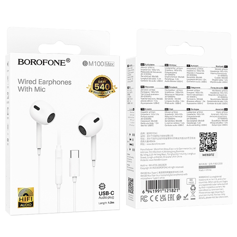 Проводные наушники Type-C BOROFONE BM100 Max белые