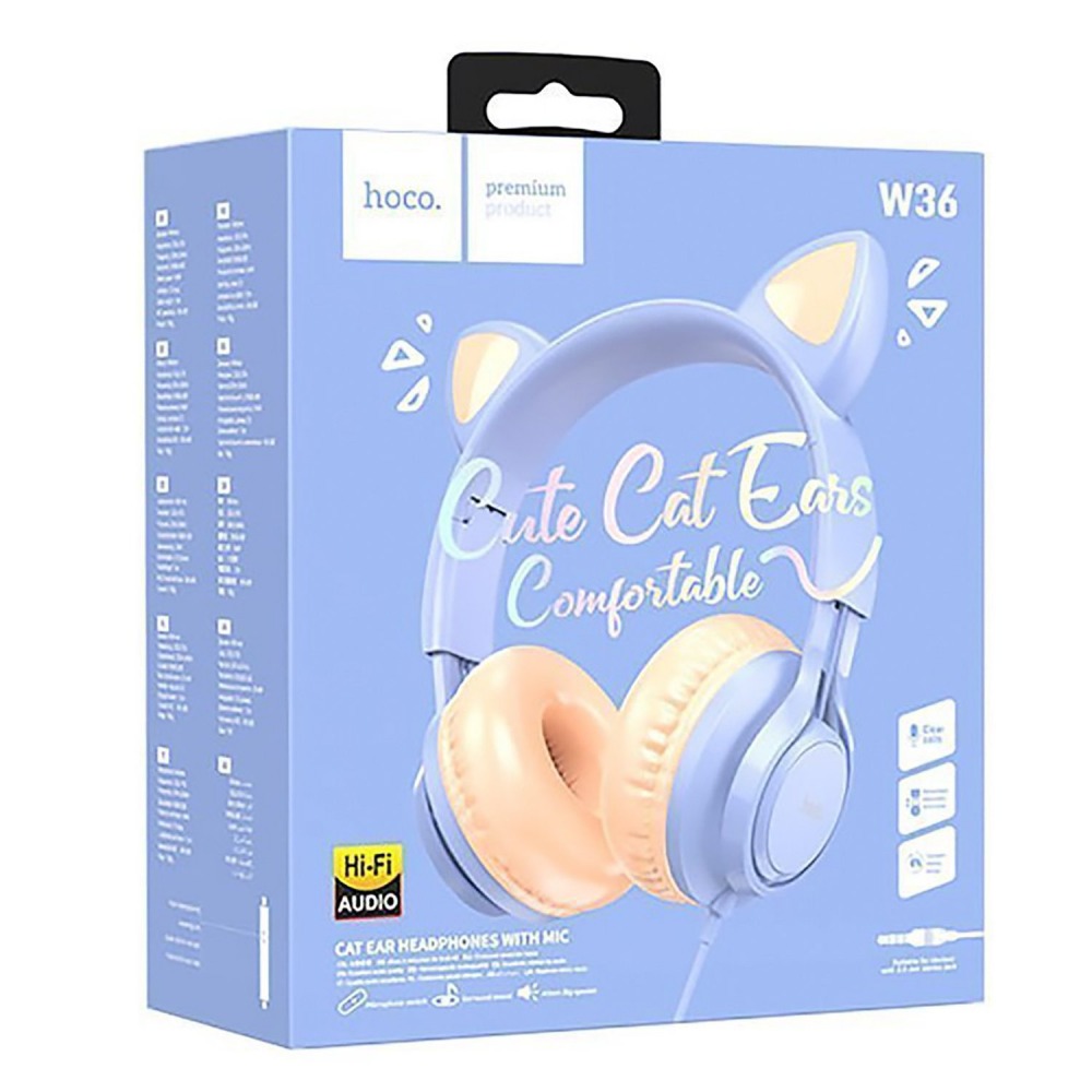 Проводные наушники с микрофоном полноразмерные Hoco Cat W36 (повр. уп.) Jack 3,5 (dream blu(242042)