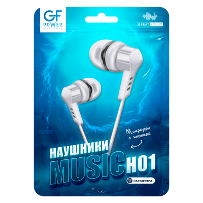 Наушники внутриканальные GFPower H01 с микр. белый (1/1000)
