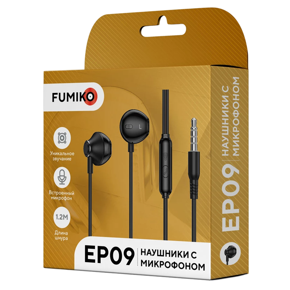 Проводные наушники 3.5 FUMIKO EP09 черные