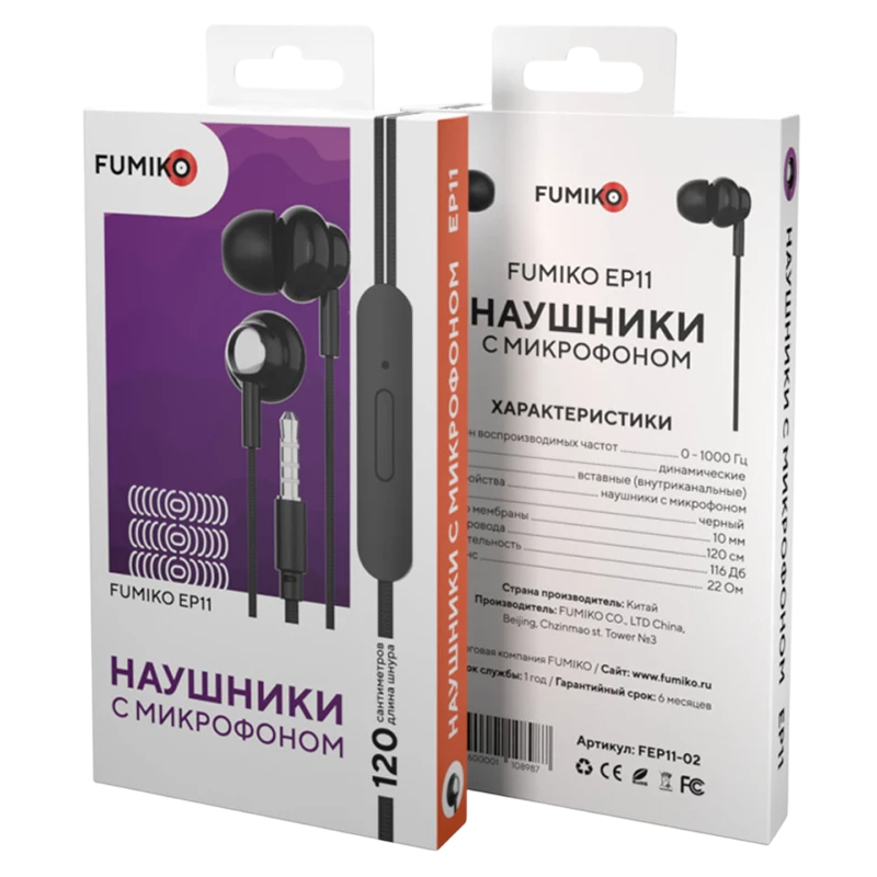 Проводные наушники 3.5 FUMIKO EP11 черные