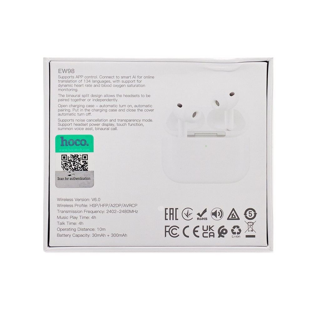 Беспроводные Bluetooth-наушники Hoco TWS EW98 ANC+AI Translation+Heart Rate (white) (242014)