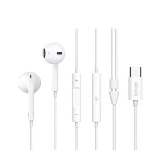 Проводные наушники с микрофоном вкладыши Celebrat E500 Type-C (white) (243927)